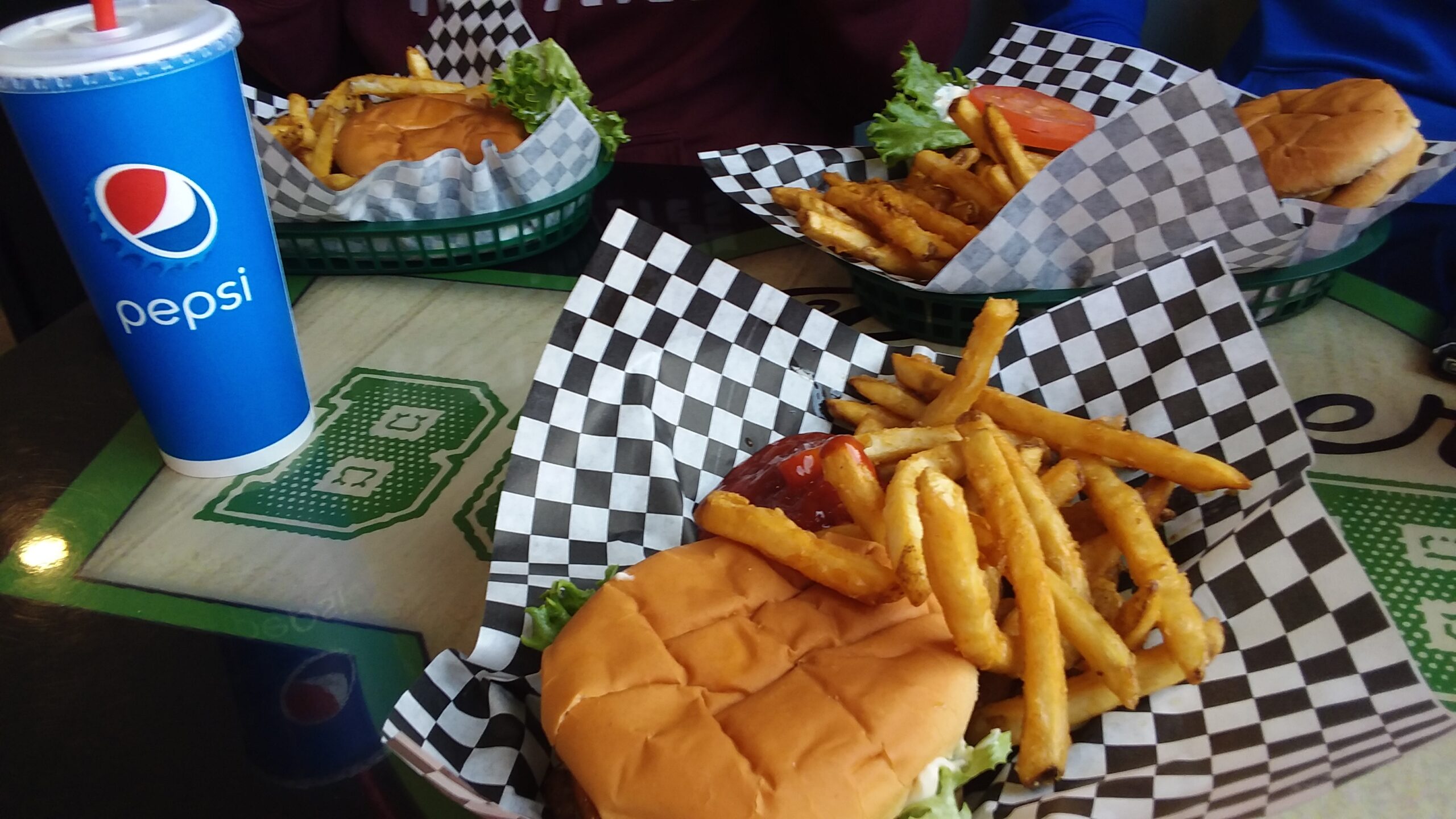 The burgers came to us in the classic burger style served up in little baskets that included the fries — Sort of like how they did in the olden days. The young aged crew were helpful and courteous.