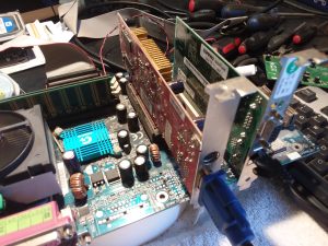 The tower, original 40GB IDE drive, and the original sound and graphics cards are long gone of course, but the primary motherboard components are still in tact.